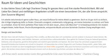 Unser Story Cafe München steht für die Nachbarschaft und dient als Ort für kulturelle Veranstaltungen. Gesunde Speisen und Getränke, eine freundliche Atmosphäre, ein liebevoll eingerichteter Gastraum, sowie die Diversität der kulturellen Events sind unsere Basis. Unsere Motivation: Begeisterung für engagiertes Denken und Liebe zu kulinarischen und kulturellen Genüssen!